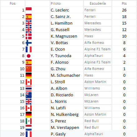 Resultado Gran Premio de Baréin 2022