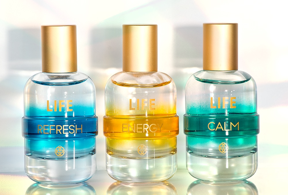 LIFE Energy por su parte brinda una sensación revitalizante de energía radiante. Perteneciente a la familia olfativa frutal, esta fragancia representa el brillo en un rayo de sol al combinar notas de mandarina, flor de loto, cedro y pachulí.
