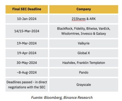 solicitudes de ETF de BTC al contado. Para estas, el plazo final más cercano está fijado para