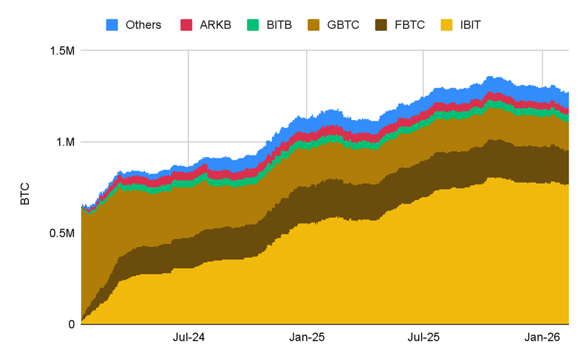 El patrimonio neto bajo gestión (AUM) del ETF spot BTC se mantiene resiliente. Fuente: Glassnode, Binance Research, 12 de febrero de 2026