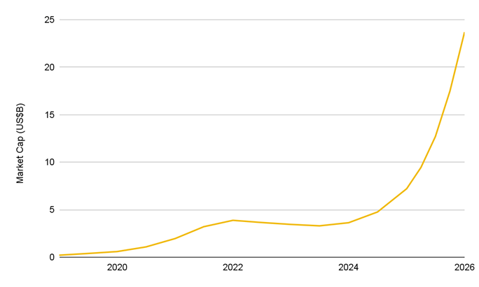 Mientras tanto, los activos del mundo real (RWA, por sus siglas en inglés) continúan destacándose en un entorno de aversión al riesgo por ser un instrumento de preservación de capital. El mercado de RWA on-chain se acerca a los USD 25.000 millones, con tesorerías tokenizadas, commodities y estructuras orientadas a rendimiento atrayendo capital en busca de estabilidad y transparencia. Además, la adopción se está acelerando entre instituciones que exploran caminos de tokenización.